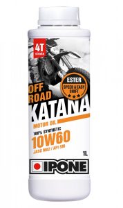 Oli motor offroad Katana yang di bandrol dengan kisaran harga Rp 270.000,- merupakan oli yang di produksi khusus untuk motor 4T stroke yang membutuhkan ketahanan khusus agar oli dapat meindungi mesin serta tidak cepat panas yang bisa mengakibatkan banyak hal seperti kanpas terbakar atau kopling lengket.