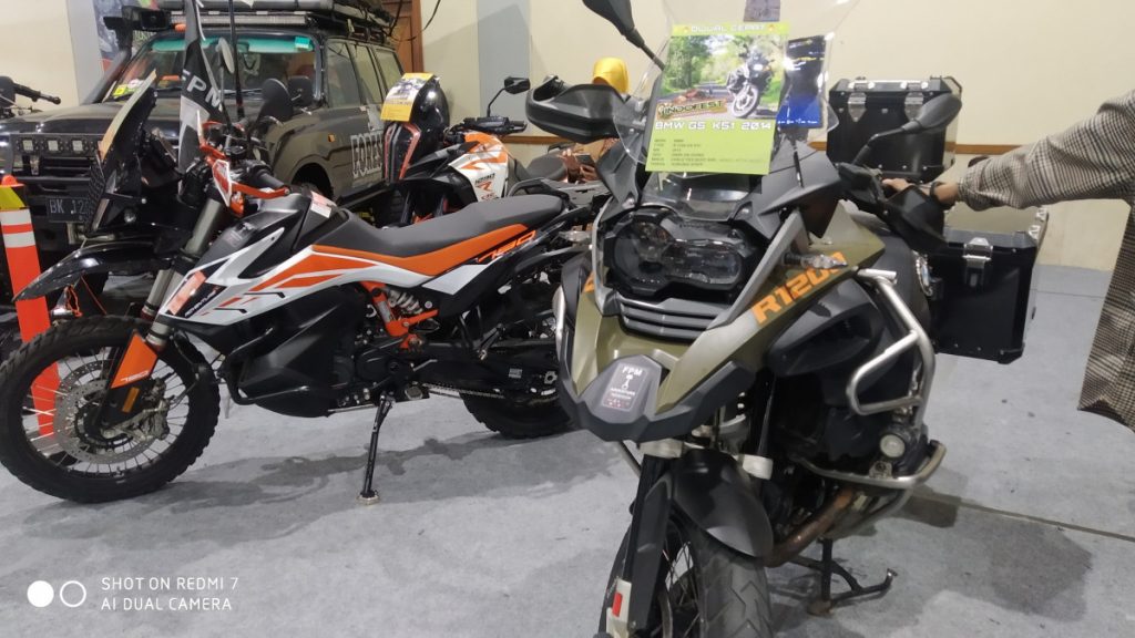 Namun yang menarik dan tak luput dari perhatian para pengunjung yang hadir di Indofest 2020 adalah penampilan kendaraan roda dua berkapasitas mesin besar seperti BMW R1200, KTM 790 dan KTM Super Adventure 1290 serta Honda CRF Rally 250 dimana kendaraan tersebut adalah milik club motor CRF Rally Indonesia yang di support oleh Consina merek salah satu produk perlengkapan outdoor terbesar di Indonesia.