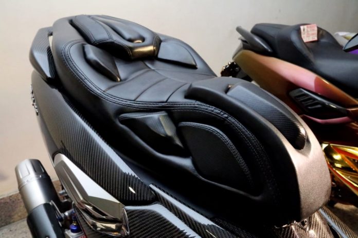 Turun dengan Yamaha Nmax 155 modifikasi bergaya elegan, Arif Susanto di kontes jok MBtech RWSA 2020 – Surabaya berhasil menjadi terbaik kedua. Bermodalkan jok custom gaya Nmax Eropa berbahan kombinasi MBtech Riders dan MBtech Premium – Carrera sukses membuat juri MBtech RWSA terpincut. Walau memakai warna tunggal, Black (MBRC 2301 dan MBPC 1001) tetapi overall desain joknya melengkapi konsep dari motor itu sendiri. Wow!