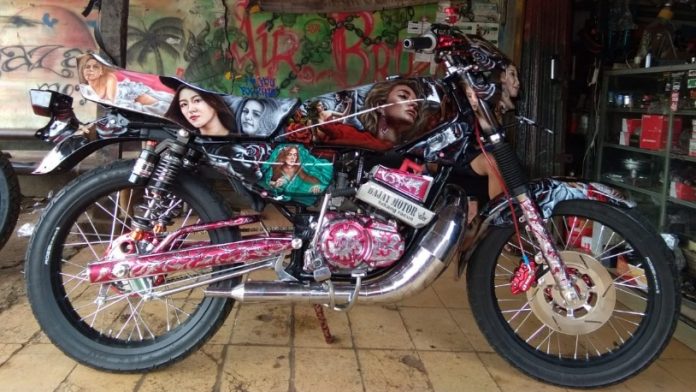 Motor yang berkelir dasar hitam ini disulap bermotif cewek seksi. Sang pemilik, yang juga merupakan owner Bajay Motor, Njay memberi nama motor yang setiap harinya nongkrong di gudang itu Cabe-cabean.