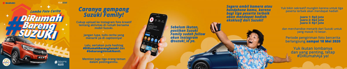 Untuk informasi lebih lengkap mengenai kompetisi #DiRumahBarengSuzuki atau kampanye #SekarangUntukNanti, bisa dilihat atau ditanyakan di akun media sosial resmi Suzuki Indonesia baik untuk mobil (Instagram @suzuki_id, Facebook Suzuki Indonesia, Twitter @SuzukiIndonesia) maupun sepeda motor (Instagram @suzukiindonesiamotor, Facebook Suzuki Motorcycles Indonesia, Twitter @SuzukiMotorID).