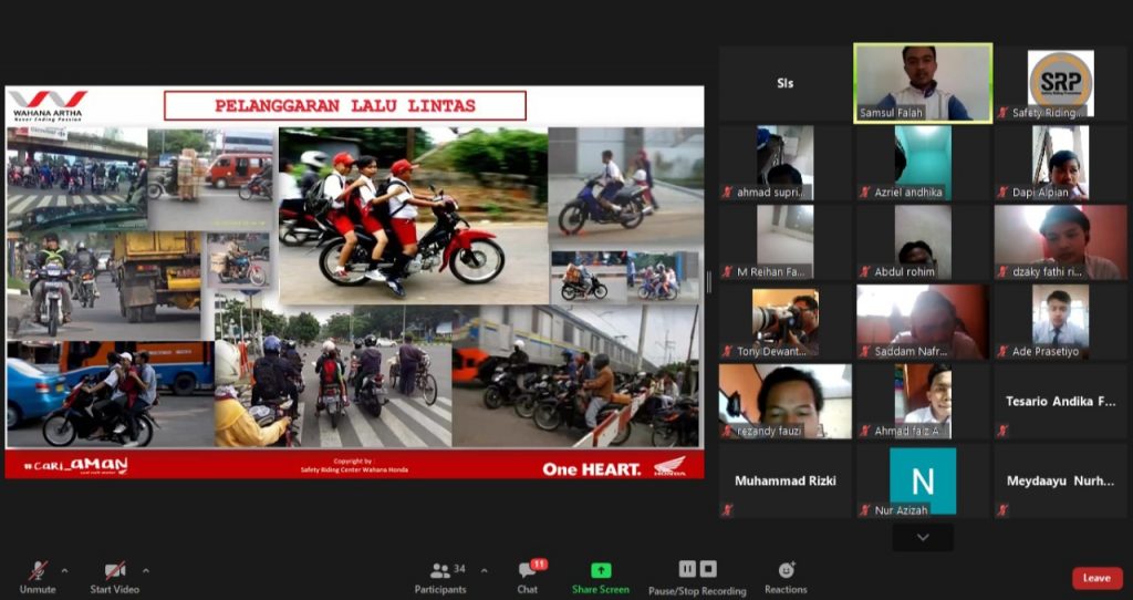 Meski masih dalam masa pandemi, tim Safety Riding Promotion, Main Dealer sepeda motor Honda Jakarta Tangerang, PT. Wahana Makmur Sejati (WMS) tetap fokus edukasi berkendara aman, namun melalui virtual webinar online.