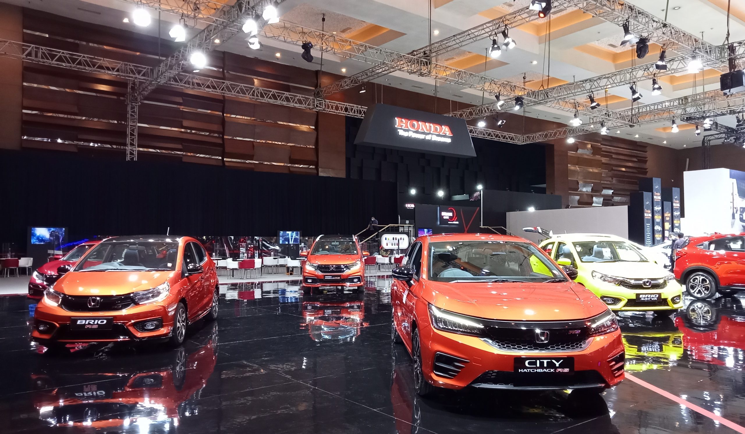 Booth Honda mobil di IIMS Hybrid 2021 tampilkan jajaran kendaraan barunya.Foto Abdi/Pengendara.com