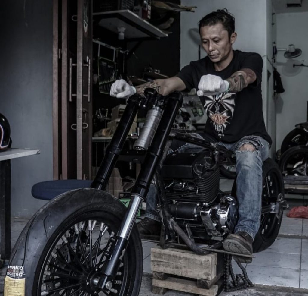 Pengendara.com-Hasil karyanya tidak lagi diragukan untuk ubah motor. Tentunya dari standar menjadi roda dua custom. Mungkin saja yang ia ambil hanyalah rangka dan mesin untuk memodifikasi motor tersebut. Banyak sudah karyanya yang sudah diwujudkan. Dari mulai custom caferacer, oldschool hingga lainnya. Bagi pria yang bernama Robby ini, bentuk ubahan custom tersebut sangatlah bervariasi. Dan karya modifikator Tanah Air sangat bagus.