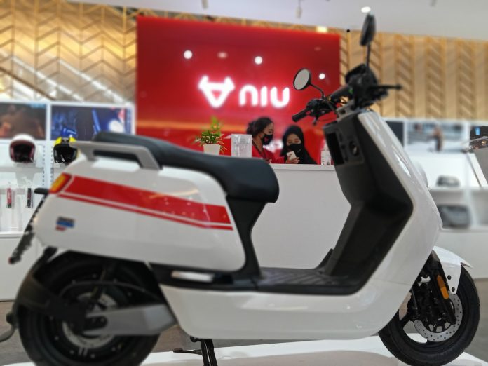 Skuter listrik Niu yang dibawa oleh UTOMOCORP, Agen Pemegang Merk (APM) hadir dalam ajang Indonesia International Motor Show (IIMS) 2021.