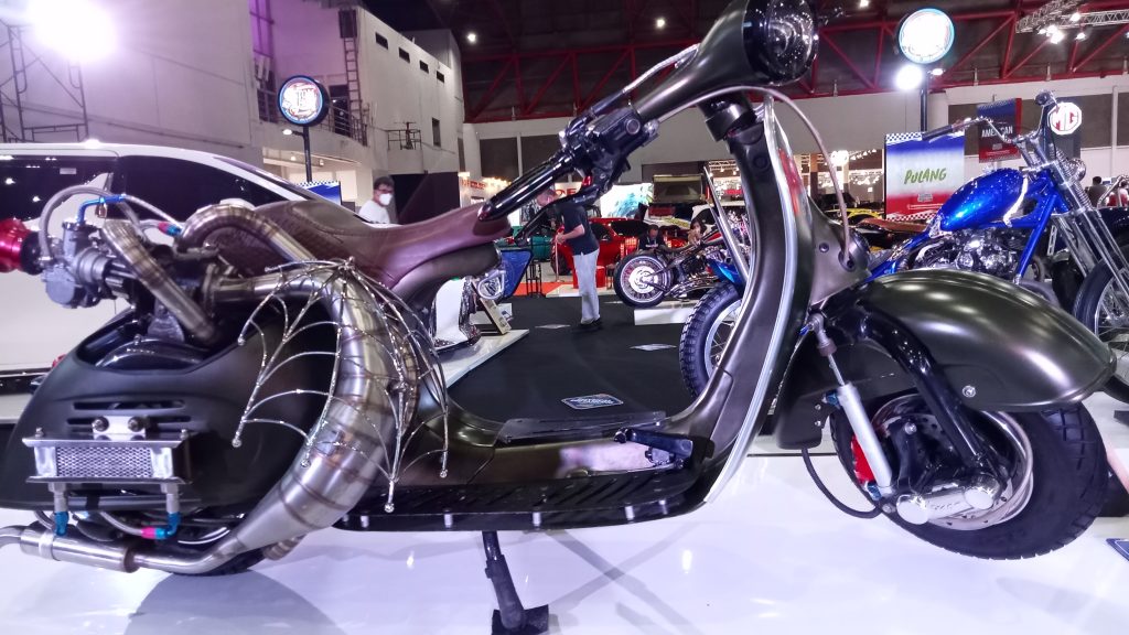 Indonesian Custom Show pamerkan motor Vespa knalpot laba laba.Foto Abdi/Pengendara.com