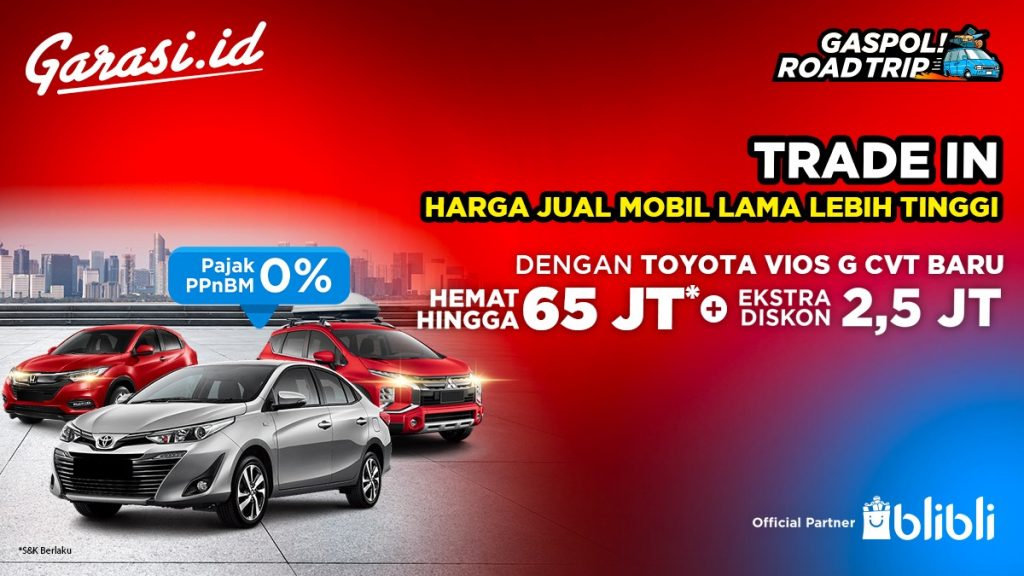 Berangkat dari hal tersebut, untuk memberikan kemudahan dalam memiliki sebuah mobil, Garasi.id bersama Blibli.com meluncurkan program Trade In dimana konsumen yang ingin memiliki sebuah mobil baru bisa menjual mobil lamanya melalui Garasi.id. Program Trade In ini sendiri merupakan rangkaian program yang bertajuk GASPOL Roadtrip Garasi.id yang berlaku dari 5 April hingga 31 Mei 2021. Sebagai benefit tambahan dalam program ini, konsumen yang ingin menjual mobil lamanya dalam program ini akan diberikan harga jual tinggi dan terbaik.