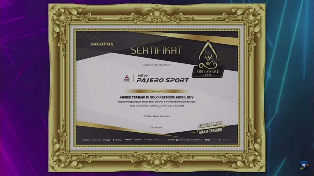 Pengendara.com-Hal tersebut berdasarkan hasil riset Solo Best Brand and Innovation (SBBI) 2021 yang diselenggarakan oleh Harian Solopos. Ini merupakan penghargaan kedua dari ajang tersebut setelah sebelumnya mendapat penghargaan dari ajang yang sama tahun 2020. Tidak hanya Mitsubishi Xpander, model SUV unggulan Mitsubishi Motors, Pajero Sport juga mendapatkan penghargaan sebagai “Merek Terbaik” pada kategori Mobil SUV.