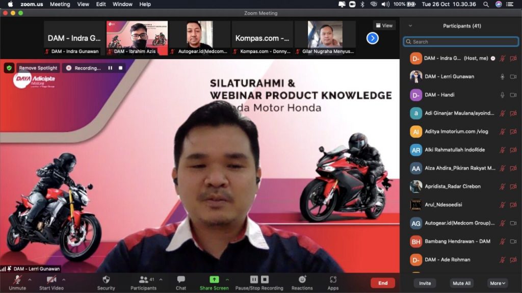 PT Daya Adicipta Motora (DAM), Main Dealer Sepeda Motor dan Suku Cadang Honda di Jawa Barat menggelar kegiatan dengan tema “Sharing Product Knowledge Sepeda Motor Honda bersama Media & Blogger” pada hari Selasa, (26/10/2021).