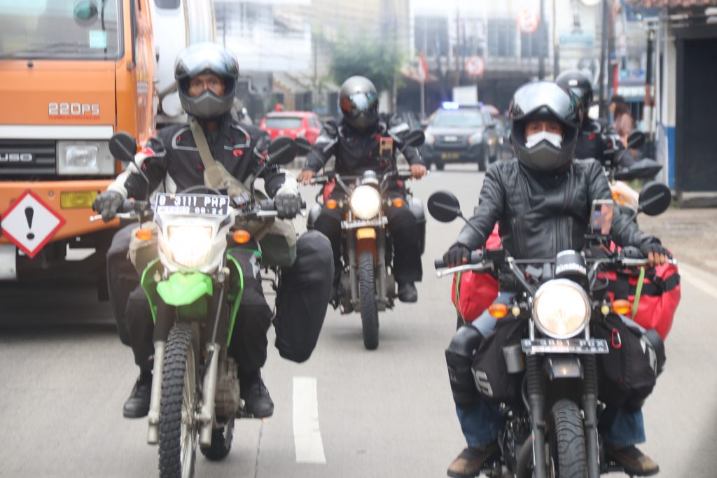 Selanjutnya mereka yang tetap safety dengan perlengkapan apparel Contin dan Trooper custom helm memperoleh voorijder hingga masuk ke area Feri, pelabuhan Merak. Perjalanan penyeberangan ini hanya tiga jam. Masuk Bakaheuni, Lampung, kedatangan mereka diterima Supriyadi Alfian, Ketua PWI Provinsi Lampung yang didampingi Sekretaris Nizwar, Jumat (29/10/21). Hanya sejenak mereka singgah di PWI Lampung, kemudian mereka melanjutkan perjalanannya menuju Palembang, Sumatera Selatan.