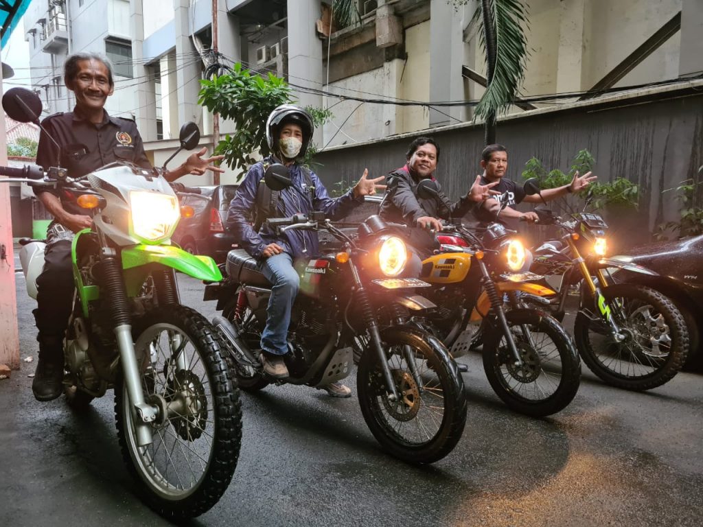 Pengendara.com-Tinggal menunggu hari keberangkatan ke-4 rider tersebut yang rencananya akan dilepas dari Dewan Pers Jakarta Pusat. Yanni Krishnayanni (jurnalis Askara.co), Agus Asianto (trenzindonesia), Indrawan Ibonk (journeyofindonesia) serta Sonny Wibisono (otomotif1) ke-4 rider yang akan melintasi 15 pulau, 34 provinsi dan tujuh gunung tertinggi di Indonesia. Keberangkatan mereka ini akan menggunakan sepeda motor Kawasaki, dua unit W175TR, satu unit KLX230 dan satu unit KLX150. Roda dua yang dikeluarkan dari PT Kawasaki Motor Indonesia (KMI) itu sudah ready untuk keberangkatannya. Segala pengecekan mesin dan kondisi motor sudah dilakukan oleh bengkel Kawansakti yang berada di Bintaro, Jakarta Selatan.