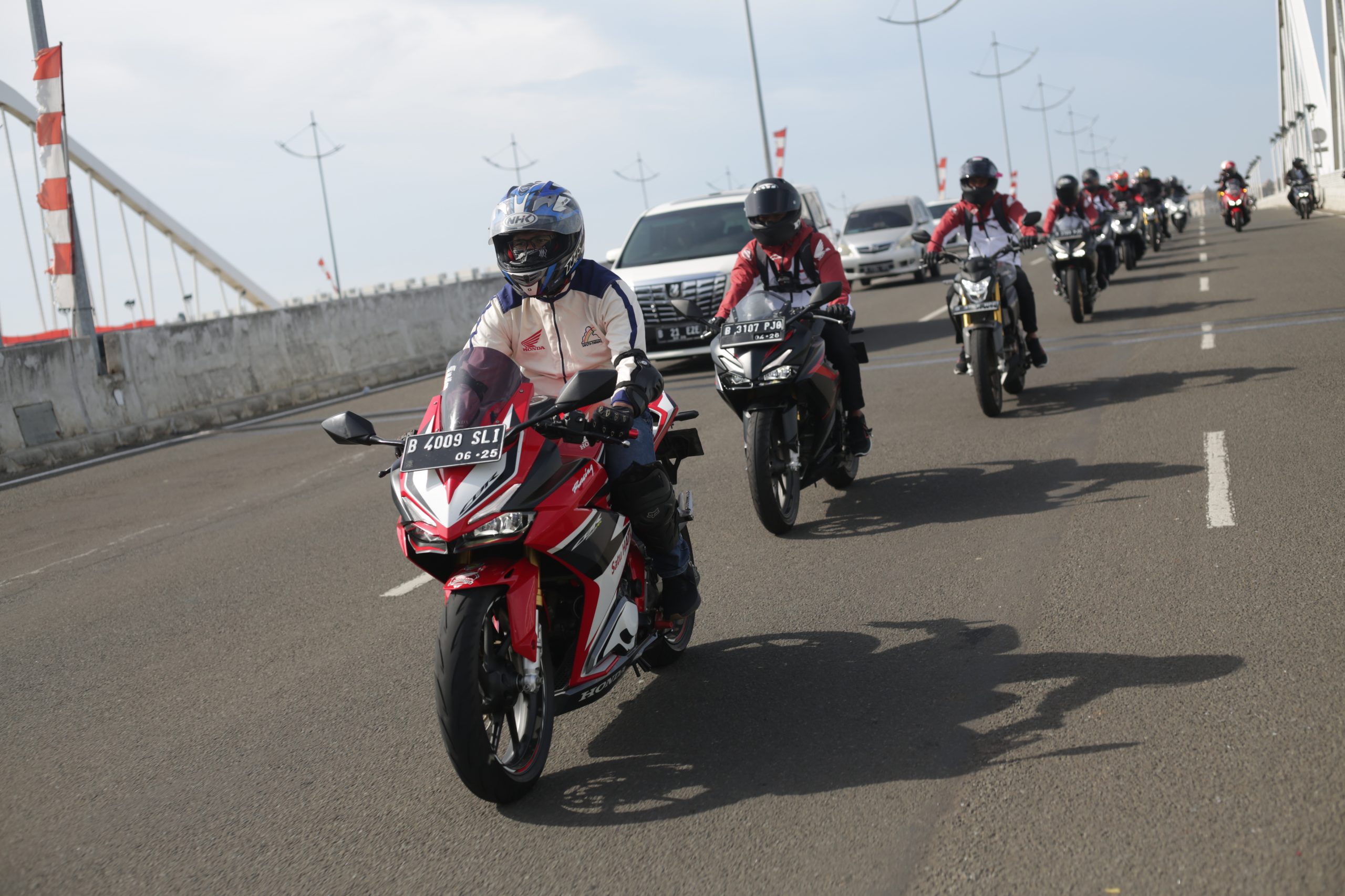Pengendara.com- Acara perdana ini dikemas spesial karena AHM ikut mengajak ‘jagoan’ balap Astra Honda Racing Team (AHRT) untuk riding bareng dengan komunitas. Acara dengan tajuk Astra Honda Racing Team Riding Bareng Honda Community dihadiri langsung empat pebalap AHRT yaitu Irfan Ardiansyah, Rheza Danica Ahrens, Lucky Hendriansyah dari ajang Asia Road Racing Championship (ARRC) dan Delvintor Alfarizi dari balap MXGP. Sedangkan komunitas yang hadir merupakan perwakilan dari wilayah Jakarta dan Tangerang.