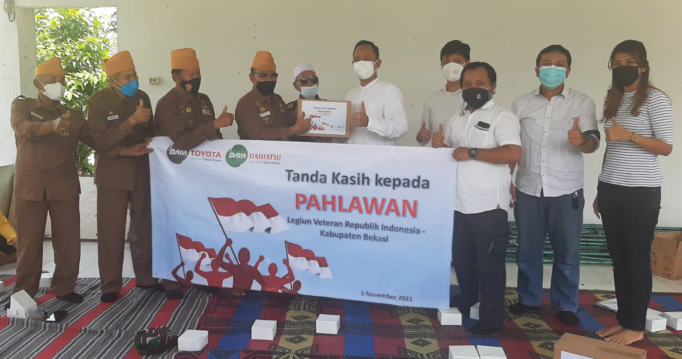 Anak perusahaan Daya Group yang bergerak di bisnis otomotif roda empat, yaitu PT Daya Adicipta Sandika (Daya Toyota) dan PT Daya Adicipta Wihaya (Daya Daihatsu) juga memberikan bantuan paket sembako untuk para veteran yang tergabung dalam LVRI area Kabupaten Bekasi. Serah terima bantuan ini diberikan pada hari Jumat (5/11) oleh Branch Head Daya Toyota Bekasi, Bapak Khairul Rizal secara simbolik kepada Ketua LVRI Kabupaten Bekasi, yaitu Letkol (Purn) KS Sudarsono., SH.Sementara PT Nyalindung yang bergerak di bisnis perkebunan juga memberikan apresiasi kepada para pahlawan di sekitar lingkungan perusahaannya. Aktivitas sosial PT Nyalindung dilakukan pada hari Selasa (9/11), dengan memberikan bantuan paket sembako secara simbolik kepada Bapak Ahma Bin Sidroi dan Bapak Adjidji yang merupakan para pejuang veteran di Indonesia.