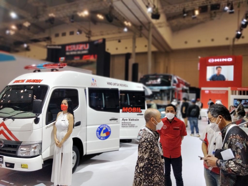 Di boothnya yang berada di arena GIIAS 2021 Hino juga menampilkan Hino Dutro 110 SDBL – Flexicab yang tampil dengan bodi mobil vaksin keliling. Hino Flexicab merupakan Microbus yang hadir dalam bentuk kendaraan utuh atau sasis, mesin, dan bodi yang siap digunakan. Sementara Inovasi terbaru dari Hino tersebut dapat mengurangi waktu tunggu pelanggan di karoseri agar bisnis lebih cepat berjalan.