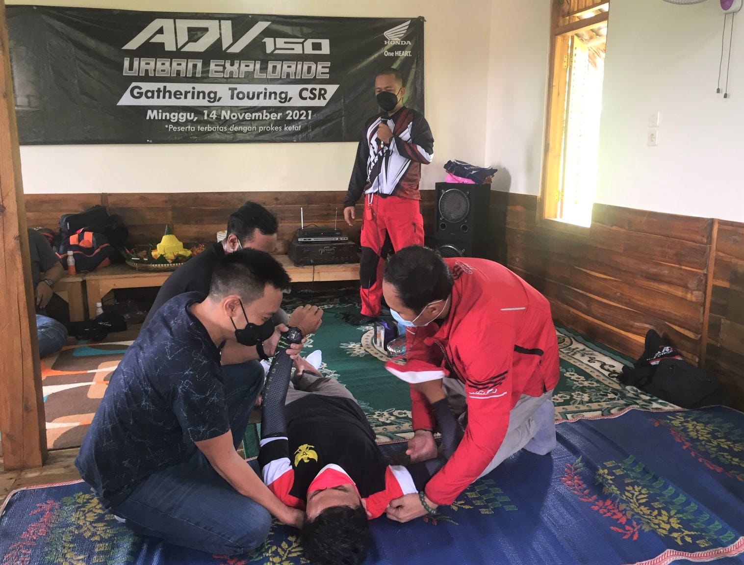 Dalam kegiatan ini juga digelar sharing pengetahuan terkait keselamatan diri yang berguna untuk anggota komunitas yang kerap berkendara jauh. Basic life support di berikan dengan beragam materi mendasar untuk mengatasi korban kecelakaan dijalan raya. Ternyata penanganan yang tepat dapat meningkatkan kesempatan hidup lebih tinggi korban kecelakaan. Beragam kondisi yang dialami korban kecelakaan mulai dari membuka helm hingga penanganan patah tulang diberikan pada kesempatan ini.