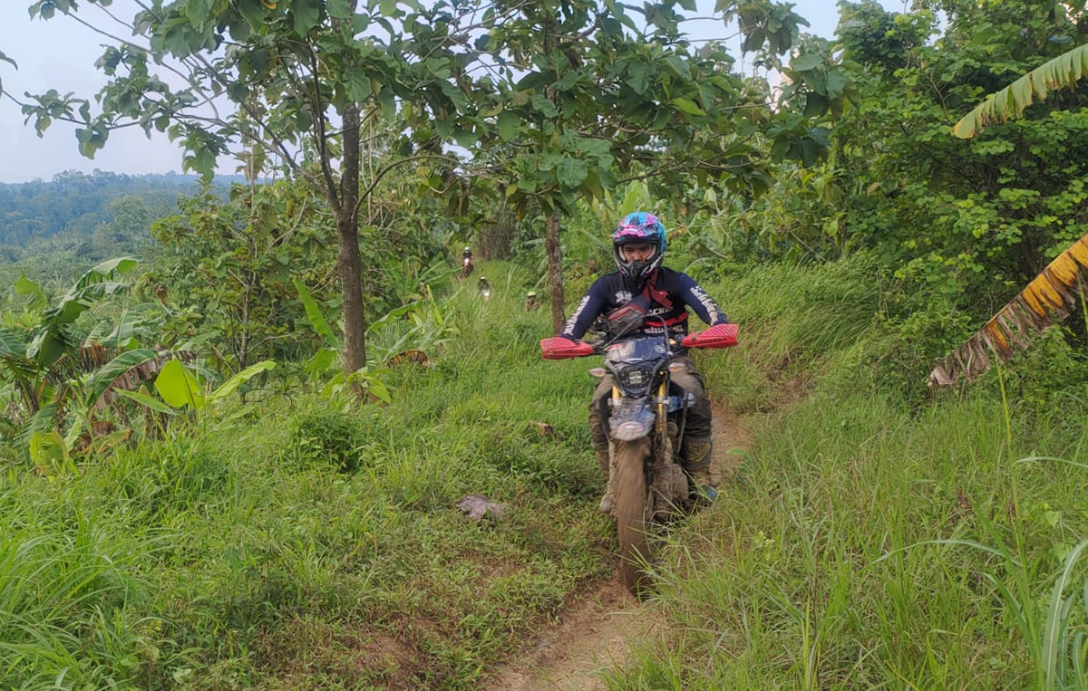 Pengendara.com-Sebanyak 20 bikers menjajal ketangguhan Honda CRF150L dengan dua jalur off-road dan on-road sambil menikmati keindahan alam sekitar di jalur yang dilalui di daerah Purwakarta, Jawa Barat. Jalur yang dilalui oleh peserta pun bervariatif mulai dari jalan aspal, berbatu, hutan pinus, hingga tanah.
