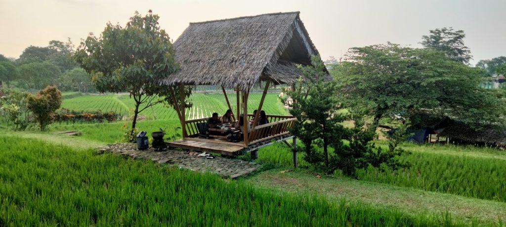 Keunikan lain dari tempat makan ini adalah penyajiannya yang terasa seperti berada di tengah sawah yang jauh dari perkampungan dan pesanan akan disajikan secara tradisional.