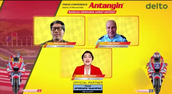 “Deltomed melalui produknya, Antangin dengan bangga menjadi sponsor di event besar dunia untuk MotoGP 2022. Ini sebagai partisipasi Deltomed di momen MotoGP yang telah bekerjasama dengan Gresini Racing Team. Deltomed ingin melebarkan sayapnya ke dunia otomotif agar Antangin lebih terkenal dan lebih memasyarakat di kancah internasional,” kata Mulyo Rahardjo, CEO Deltomed di konferensi pers, zoom, Senin (21/2/22).