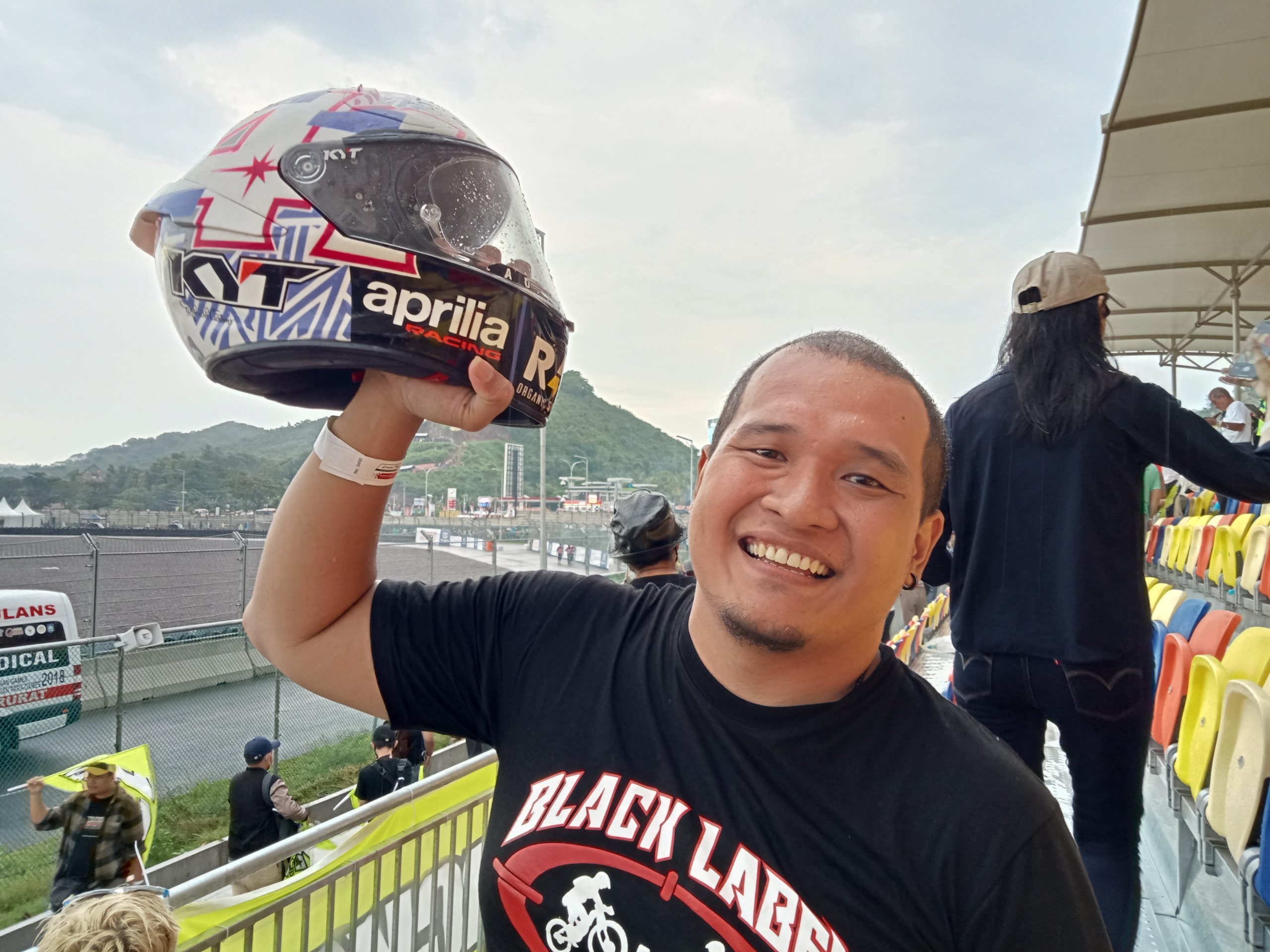 “Nga apa apa, yang penting sudah terbalas dapat helm pebalap dunia,” ujarnya.