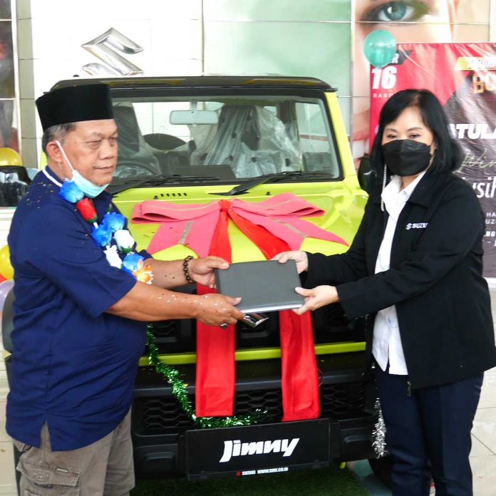Pengendara.com, Bekasi — Bapak Jusih dari Bekasi berhak mendapatkan satu unit Suzuki Jimny dalam program promosi Suzuki Bonus Suzuki yang berlangsung sejak Desember 2021 sampai Februari 2022.