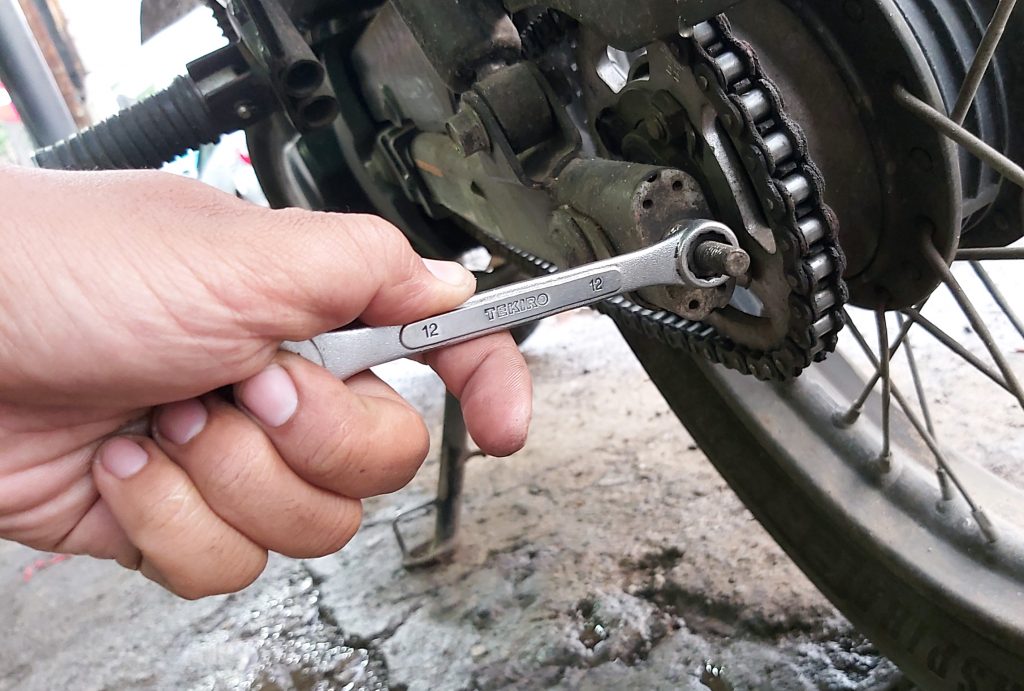 Toolkit tersebut sangat bermanfaat ketika motor mengalami masalah dan jauh dari bengkel sehingga bisa kita perbaiki sendiri seperti misalnya membetulkan rantai yang sering kendur atau bahkan putus, Untuk kondisi seperti ini kita memerlukan perkakas tang untuk menyambungkan lagi rantai yang putus kemudian kunci pas ring nomor 10mm, 12mm, 17mm dan 19mm untuk menyetel kerenggangan rantai.