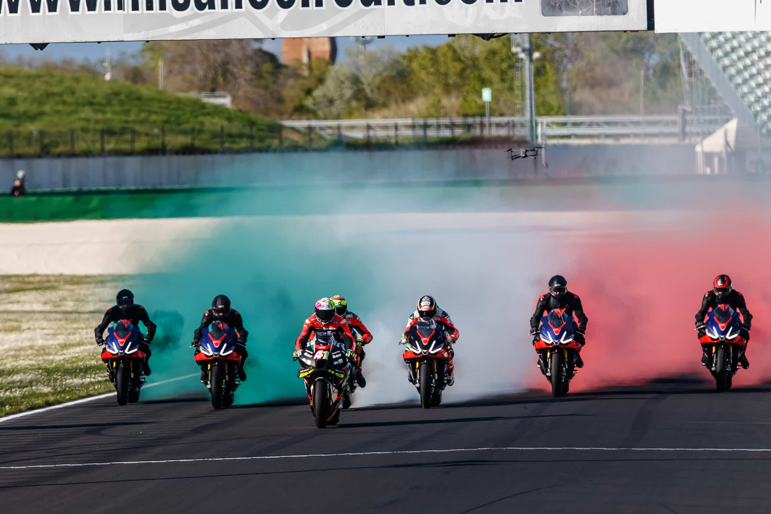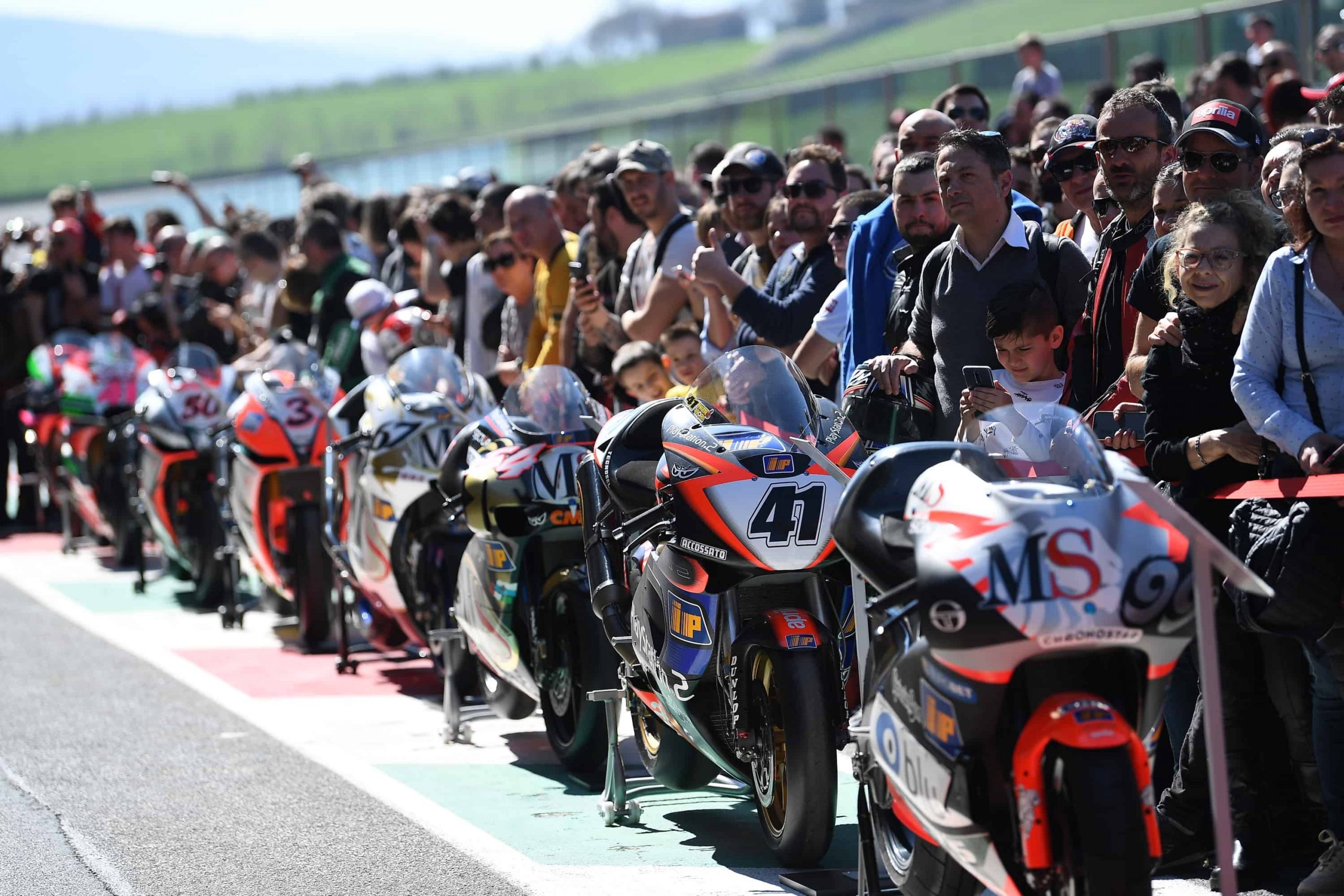 Selain itu, akan dibawa ke lintasan Italia motor Aprilia Sport Production 250 Italian Championship dan Tuono X eksklusif, produksi naked paling ringan dan paling bertenaga di dunia, yang dikendarai oleh Espargaró, Viñales dan Savadori.