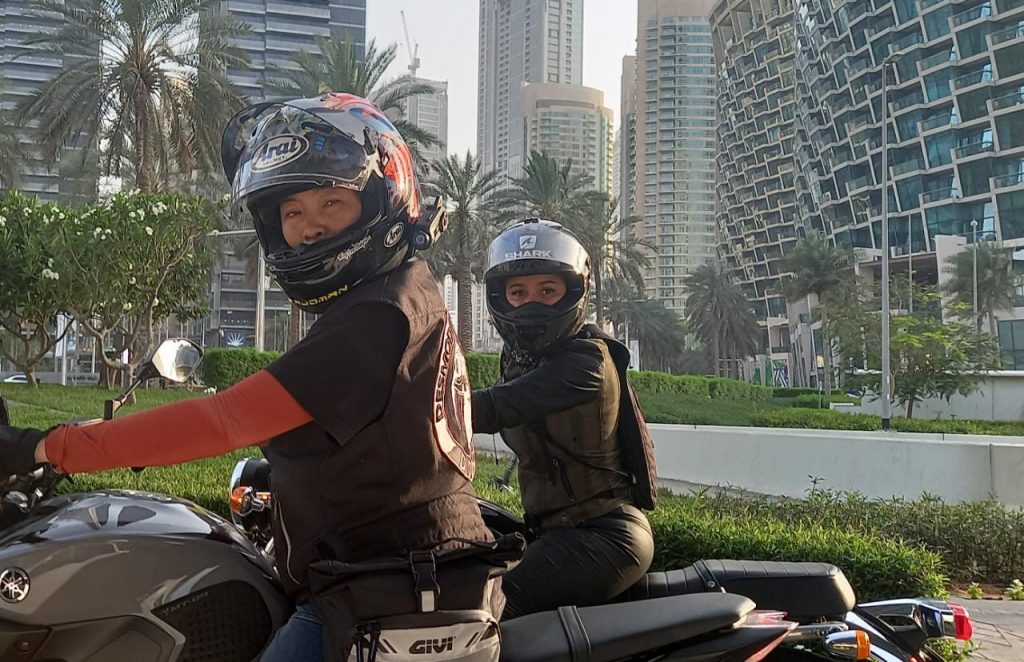 “Jadi bisa kebayang luas dan lebarnya jalan di Dubai, asyik banget untuk menggas motor. Trek touring saya yaitu dari Iran atau Tehran menuju Dubai, Qatar, Riyadh, Makkah, Jeddah dan Madinah. Dengan total perjalanan 4962 kilometer. Perinciannya, Tehran ke Dubai 2357 kilometer (km). Dubai ke Qatar 651 km, Qatar ke Riyadh 581 km, Riyadh ke Makkah 868 km, Makkah ke Jeddah 90 km dan Jeddah ke Madinah 415 km. Setelah dari Dubai, pas di hari Idul Fitri, saya menuju Saudi Arabia dengan rute diluar planning yaitu Dubai, Abu Dhabi, Qatar, Bahrain, Saudi Arabia,” tutur perempuan berhijab ini.