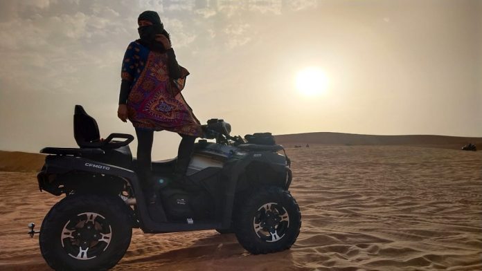 “Bersyukur saya ditemani suami tercinta. Enak banget touring di Saudi Arabia bareng suami. Jadi kan jika capek, saya bisa gantian mengendarai motornya sama suami,” kata Dea.