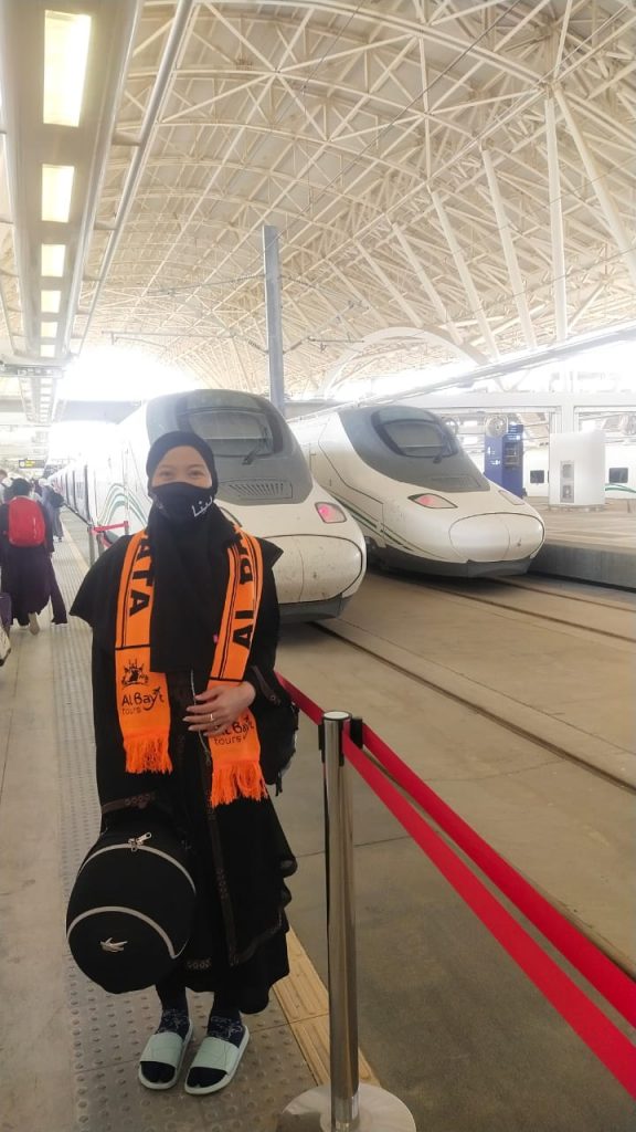 “Kereta ini sangat menyingkat waktu. Jika naik bus Jeddah ke Madinah, enam jam setengah. Tetapi karena adanya kereta listrik hanya menempuh satu jam setengah,” ucapnya lagi.
