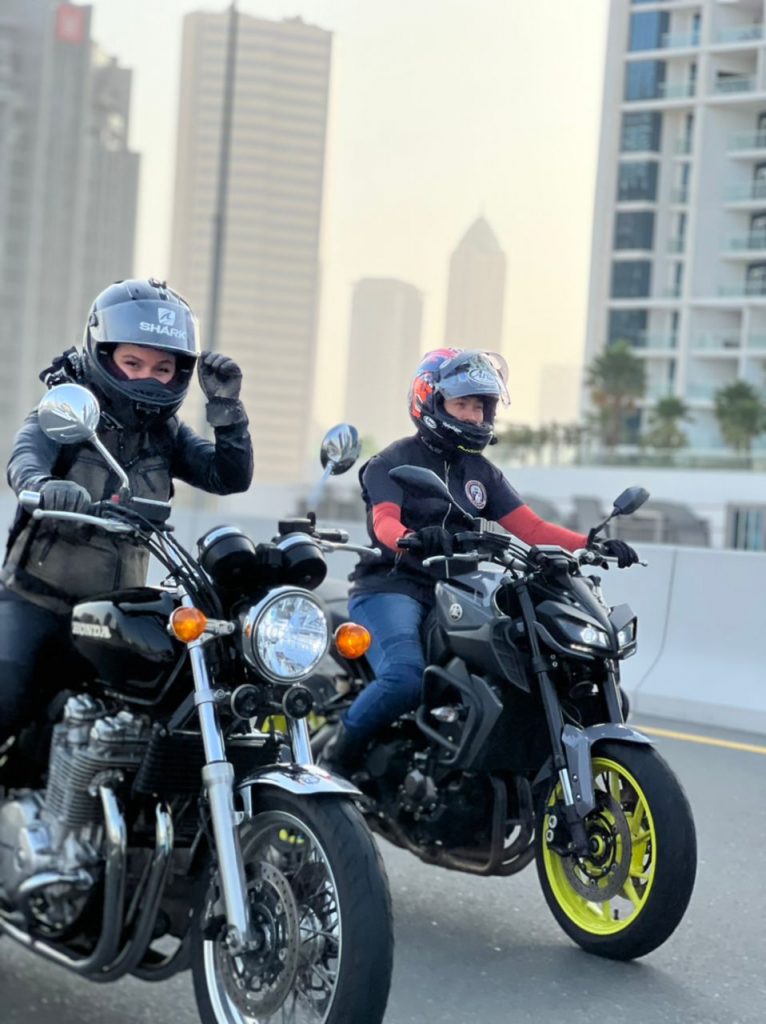 Menurut istri Feri Gitaris Bagindas ini, sangat kontras peraturan Tehran dengan Dubai. Di Dubai semua peraturan lalu lintasnya teratur. Walaupun cuaca 39 derajat celcius di Dubai, ia sangat menikmati perjalanan touringnya ini dengan menunggangi Yamaha MT09 900cc. Ia city riding keliling Dubai sepanjang 500 kilometer per hari. Jalur di Dubai sembilan lajur satu arah. Dan Jeddah berbeda dengan Dubai, di Jeddah mereka lebih agresif pengendaranya dan harus berhati-hati. Dua jalur satu arah di Jeddah. Madinah lima jalur satu arah dijalanan besarnya.
