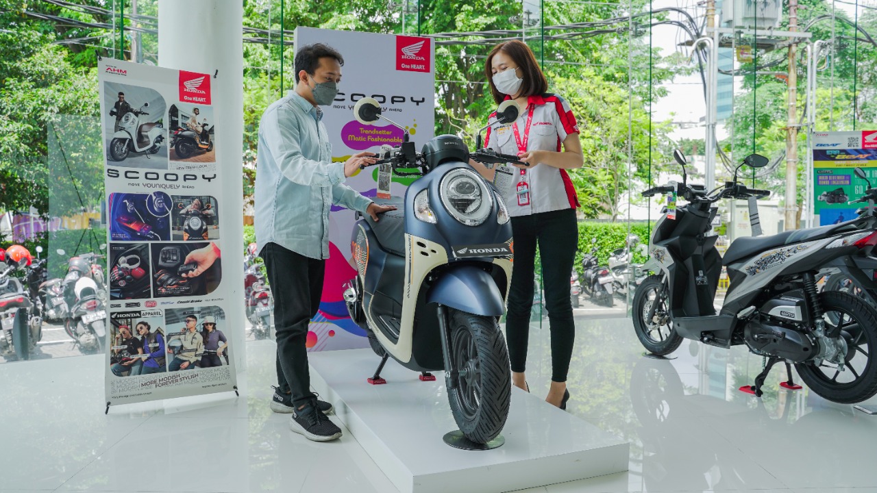 New Honda Scoopy yang kehadirannya lebih dari satu dekade terus menjadi trendsetter sesuai dengan perkembangan tren anak muda saat ini. New Honda Scoopy hadir dengan pengaplikasian teknologi frame (rangka) eSAF (enhanced Smart Architecture Frame) membuat skutik ini lincah dan mudah dikendarai. Fitur unggulan lain menjadi andalan New Honda Scoopy seperti pengisi daya baterai ponsel jenis USB (USB charger), serta pilihan tipe dengan penyematan fitur Smart Key.