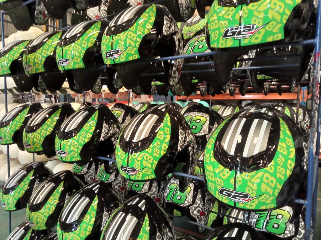 Helm G2 yang sudah berlisensi Standar Nasional Indonesia (SNI) ini, seharinya mencetak 100 helm all variant. Dan yang asyiknya lagi, helm ini juga menerima pesanan helm G2 custom.
