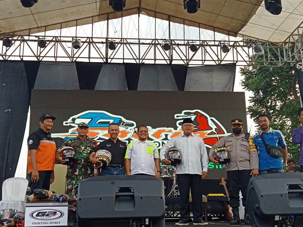 PT Poliprima Cipta Unggul (PCU) yang memproduksi helm G2 Sabtu (20/8/22) menyerahkan dua motif helmnya, Batik dan Mandalika ke anggota DPRD Jawa Timur, Gus Tamim serta pejabat daerah lainnya di acara Jambore Nasional (Jamnas) Satria Club Indonesia (SCI) ke-18 Blitar.