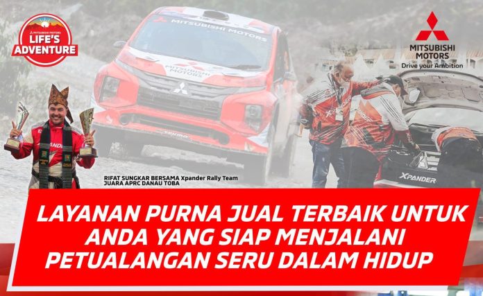 Pengendara.com-Sehubungan dengan kemenangan Brand Ambassador Mitsubishi Motors di Indonesia sekaligus pereli nasional, Rifat Sungkar bersama Xpander AP4 dan tim pada Kejuaraan Asia Pacific Rally Championship (APRC) dan Kejuaraan Nasional Sprint Rally 2022, PT Mitsubishi Motors Krama Yudha Sales Indonesia (MMKSI) mengambil momentum kemenangan ini dengan memberikan penawaran menarik kepada konsumen dalam mendukung perawatan kendaraan melalui kampanye “Paket Servis Juara” dan “Kilau Juara”.