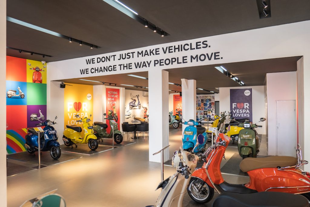 Customer akan disambut dengan showroom premium yang menampilkan berbagai produk menarik lansiran Piaggio dan Vespa, serta area bengkel yang luas dalam memberikan layanan serta penawaran untuk aksesoris dan suku cadang asli dan resmi, lengkap dengan tim personel yang sesuai dengan standar layanan PT Piaggio Indonesia.