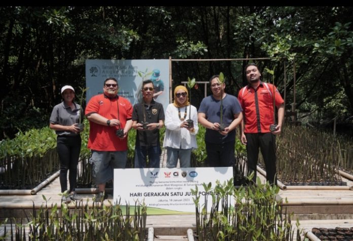 Wuling bersama dengan beberapa komunitas mobil Wuling menggelar kegiatan menanam 100 pohon bakau.
