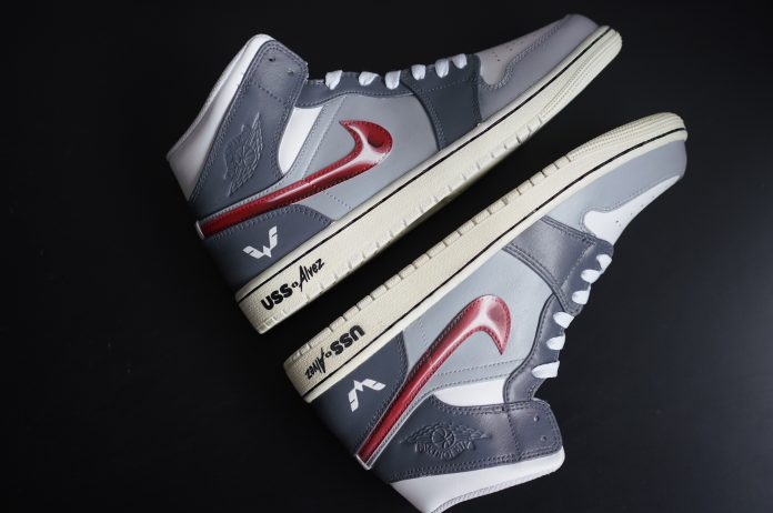 Abu-abu tua diambil dari varian Tungsten Steel Grey yang diaplikasikan di bagian heel tab dan back heel. Kemudian, abu-abu muda yang mewakili aksen Aurora Silver mewarnai bagian tengah sepatu. Selain LED rear lamp, pemilihan warna merah pada bagian Swoosh turut terpengaruh dari warna Carnelian Red. Kemudian, di beberapa bagian sepatu dibubuhkan warna putih dan tali sepatu putih yang melambangkan Pristine White. Tidak ketinggalan, pada area mid sole terdapat logo Urban Sneaker Society dan tulisan Alvez bergaya street style. Logo Wuling pun digambar pada back heel sebagai statement dalam kolaborasi ini.