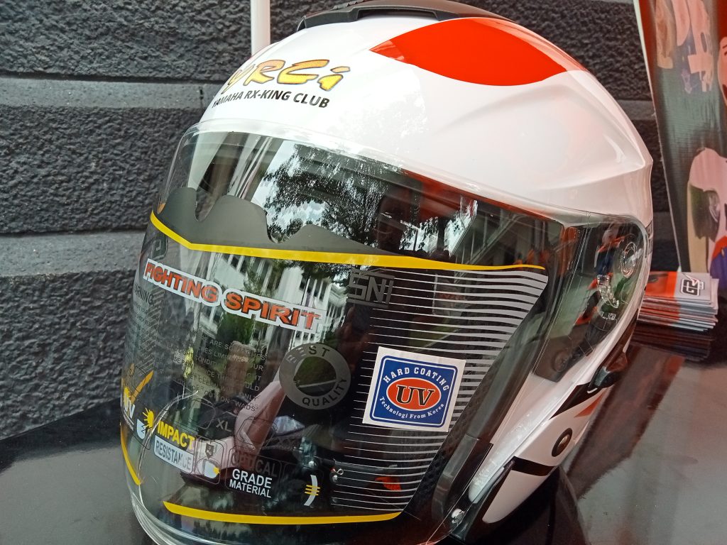 “Yang di custom di sini bukan custom yang ekstrim. Tetapi custom yang dimaksud adalah konsumen dapat menentukan motif gambar dan warna serta menambahkan nama ataupun logo di helmnya. Untuk batok, busa, visor dan pengikatnya sesuai dengan SNI. Dapat dipastikan helm ini benar aman dan nyaman,” jelasnya.