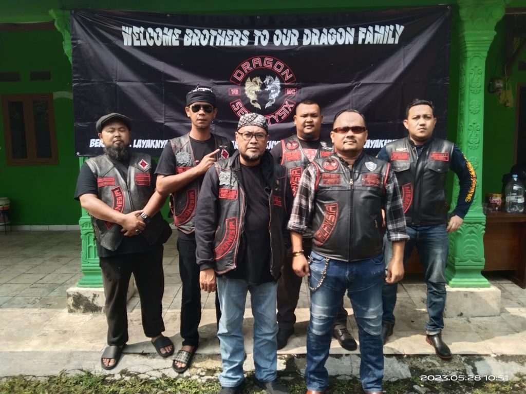Mico Mahardika, President Dragon Seventysix MC Indonesia Chapter, yang didampingi oleh Vice President Bro Ghani dan Secretary.