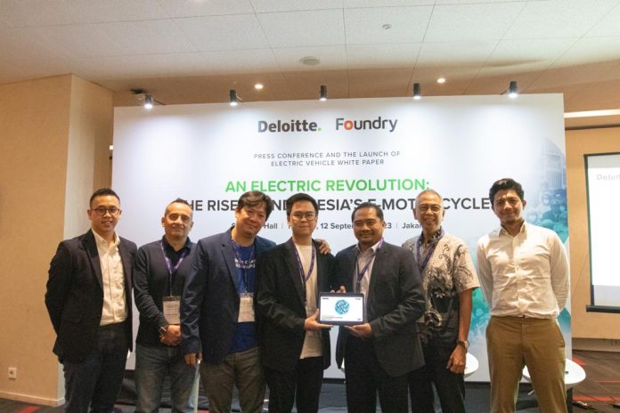 Pengendara.com-Deloitte Indonesia, berkolaborasi dengan Foundry, sebuah platform ekosistem yang menghubungkan para juara inovasi di Indonesia yang terdiri dari korporasi, tech founders, pemerintah dan badan regulasi, serta partner global, meluncurkan riset electric vehicle white paper bertajuk “An Electric Revolution: The Rise of Indonesia’s E-Motorcycle”, seiring dengan adopsi motor listrik di Indonesia yang mengalami lonjakan signifikan selama 2 tahun terakhir; bertumbuh sebesar 15 kali lipat dari tahun 2020 hingga 2022.