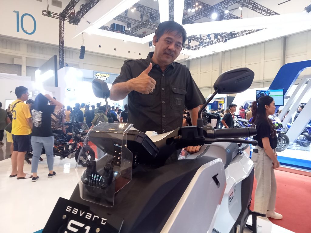 “Tangan kita ini capek atau tidak. Hasilnya akan menggambarkan apakah desain kita ini sudah cocok atau tidak untuk orang Indonesia. Yakin untuk kenyamanan dan posisi riding nan nyaman, selanjutnya, putra saya itu melanjutkan ke manufaktur. Dari rangka, cover bodi dan elektrik serta semuanya kami rancang sendiri. Termasuk juga baterainya. Semua itu kami daftarkan ke hak cipta, dipatenkan,” ungkapnya.