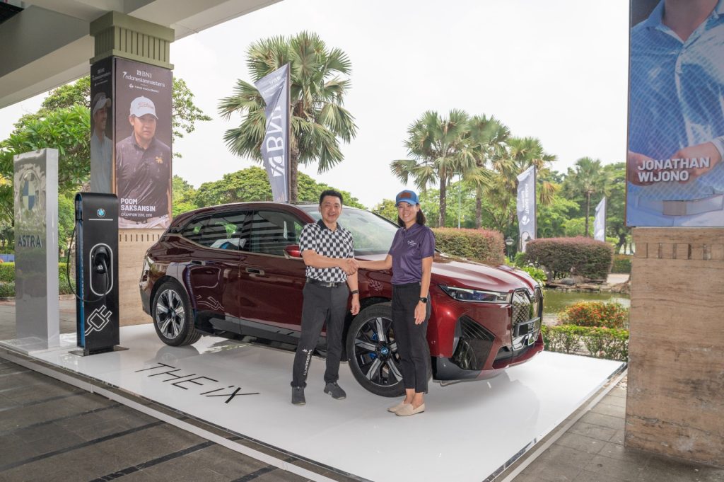 Chief Executive BMW Astra Sanfrantis Tanu secara simbolis menyerahan 15 mobil listrik BMW iX sebagai official car BNI Indonesian Masters Presented by TNE kepada Director of OB Golf Merry Kwan.