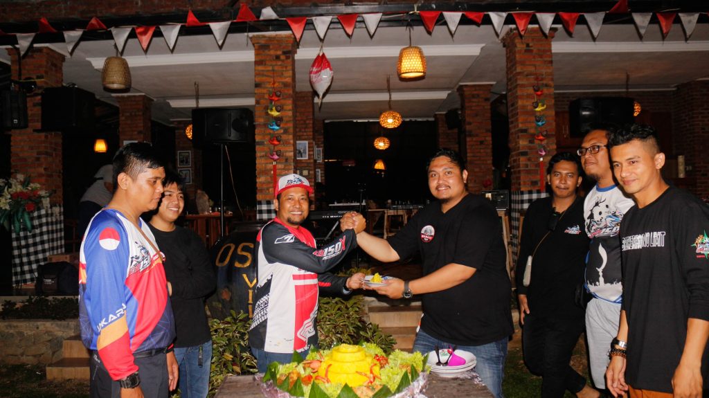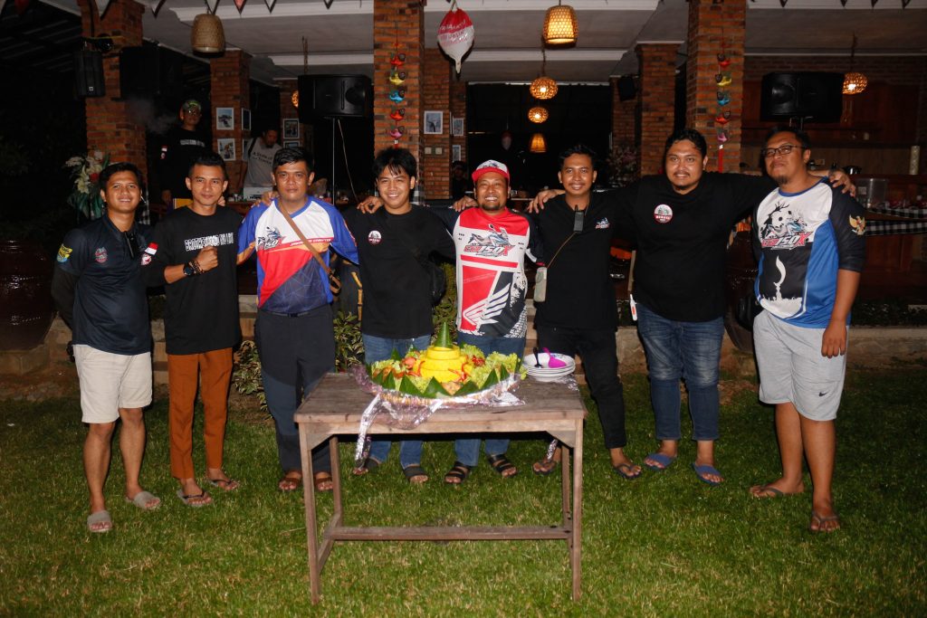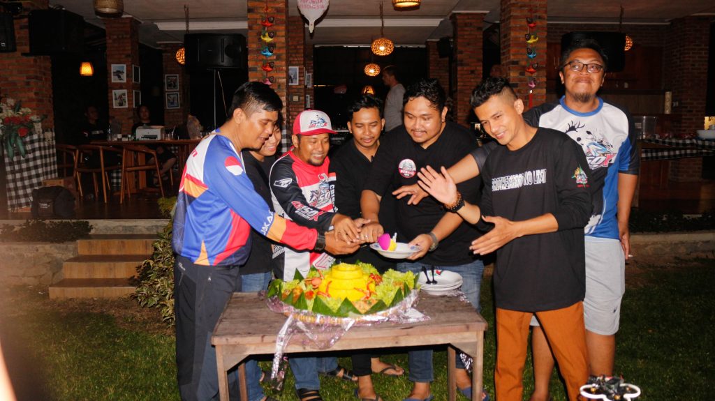 Kemudian Kata sambutan dilanjut oleh Kapengda Jabodetabekten saat ini Sdr Andi Akbar Maulana, kemudian oleh Waketumnas Cang Deddy S.E dan ditutup oleh perwakilan dari PT Wahana Makmur Sejati Main Dealer Sepeda Motor Honda Jakarta dan Tangerang yakni Om Agus Sigit Wicaksono. Setelahnya kami melakukan acara pemotongan tumpeng sebagai simbolik puncak perayaan Anniversary kami yang kedua. Pemotongan tumpeng melibatkan Seluruh Ketua Chapter atau perwakilan Chapter bersama Waketumnas dan Kapengda.
