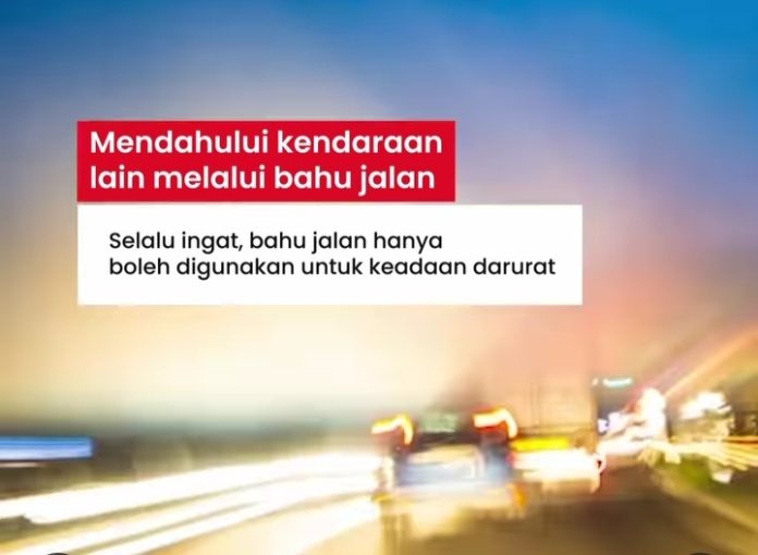 Keempat, mendahului kendaraan lain melalui bahu jalan. Ingat, bahu jalan untuk keadaan yang benar benar darurat.