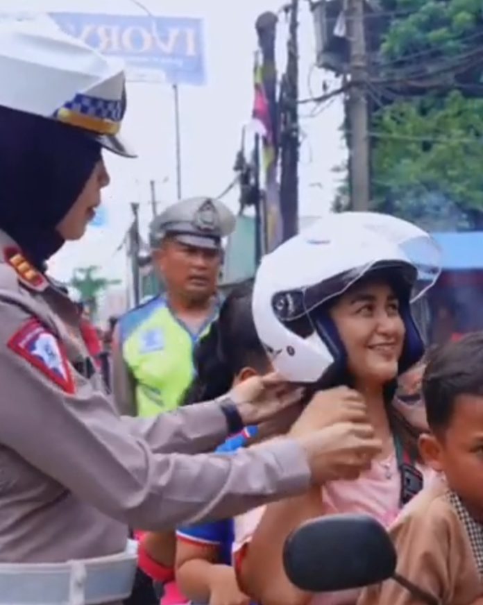 Di Cileungsi, PT PCU dan Polri menegakan Kampanye Berlalulintas demi keamanan dan kenyamanan berkendara. Helm G2 fullface dan helm G2 halfface dibagi-bagikan.