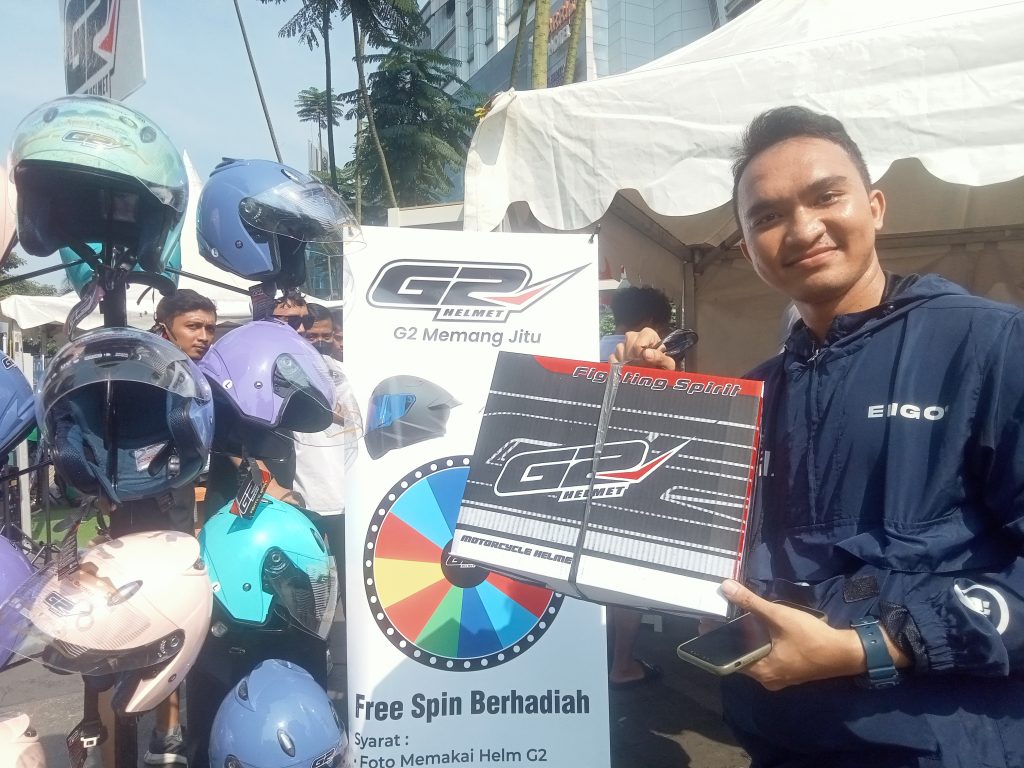 Alhasil dengan syarat yang ditentukan oleh helm G2, semua pengunjung antusias mengikutinya. Diantara pemenang yang berhasil mendapatkan helm G2 adalah Ridwan. Ia sangat senang karena bisa memenangkan helm G2.
