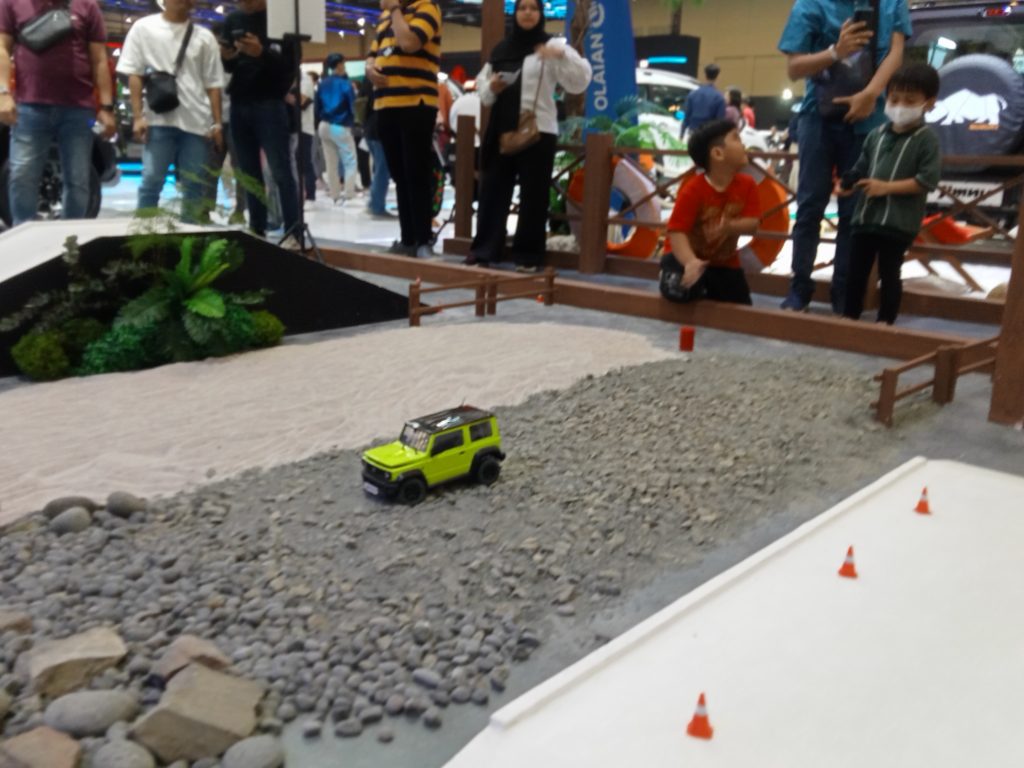 Sepertinya asyik untuk menjalankan remote control Suzuki Jimny di booth Suzuki selama penyelenggaraan GIIAS 2024.