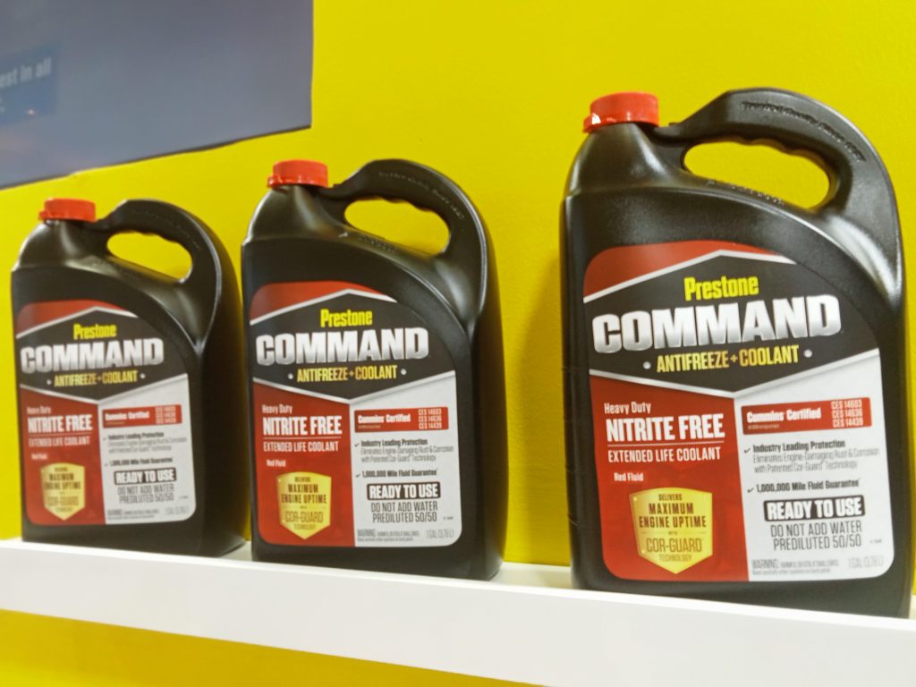 Ia memastikan pilihlah coolant yang dikhususkan untuk mesin Heavy Duty seperti coolant Prestone Cor-Guard Command Nitrite Free (NF-OAT) Extended Life (ELC) yang telah tersertifikasi Cummins (CES 14063, CES 14636, CES 14439) dan juga sudah memenuhi atau melebihi spesifikasi Volvo, CAT EC-1, Detroit Diesel 93K217, Komatsu dan ASTM 6210